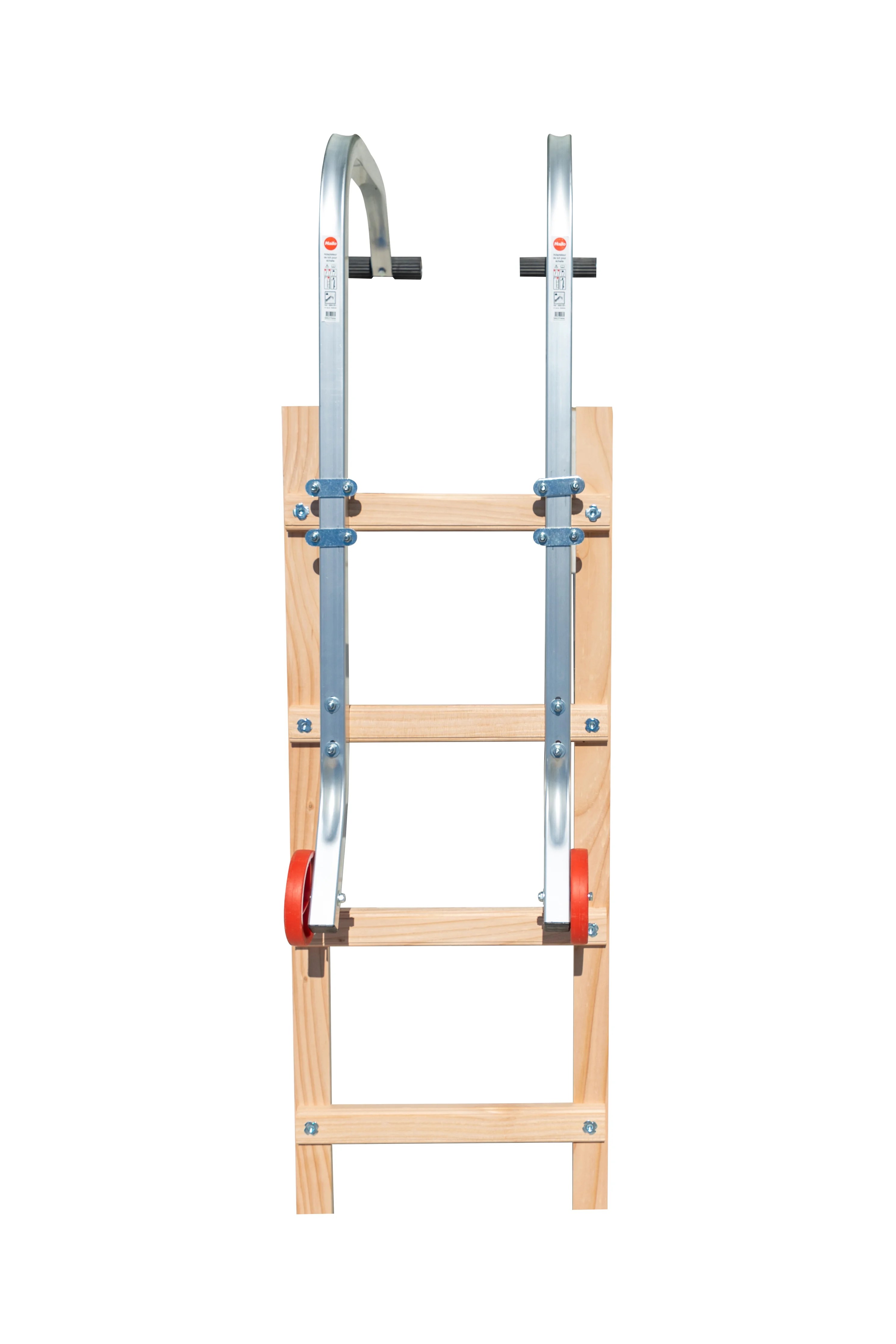 Échelle de toit en bois avec crochet de faitage.